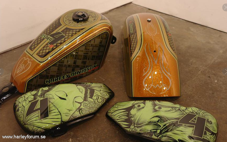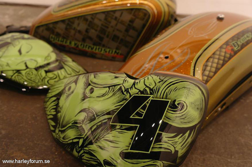 | Lackerad av D Luck, Europas Nr 1 Custompaint shop. https://www.facebook.com/Dluckscustompaint -V&H Competition blås, Rough Craft Airfilter, Mappad med Screaming Eagle box, Burley sänknings sats, fram & bak, Roland Sands styre & tanklock, mm. mm |