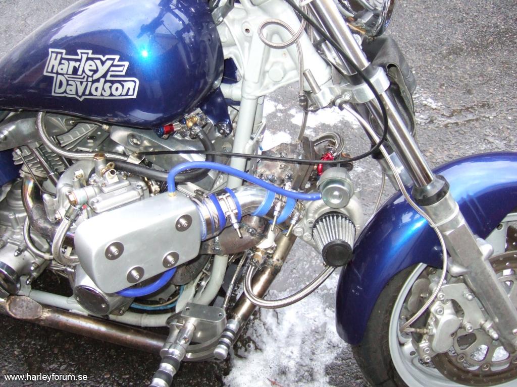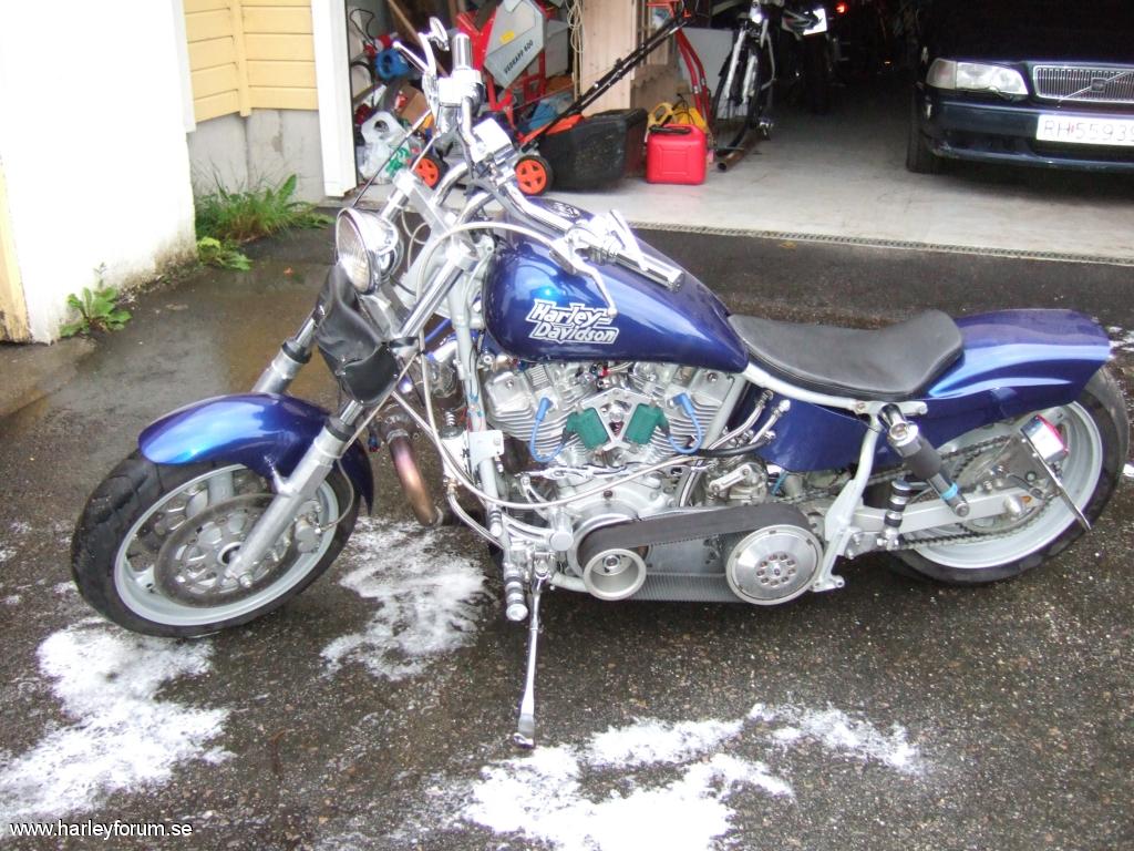 | Totalt ombygd med ny front med 4 graders rake og +4" gaffelben. Totalrenoveret motor og egendesignet turboløsning. 3" BDL open belt med BDL competition kløtsj. Ny baksving med 180 hjul. custom tank, dakota digital mini instrument. Arnott justerbare luftdempere med innebygd kompressor |
