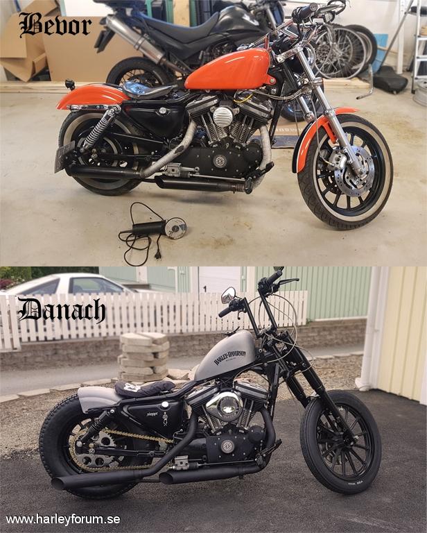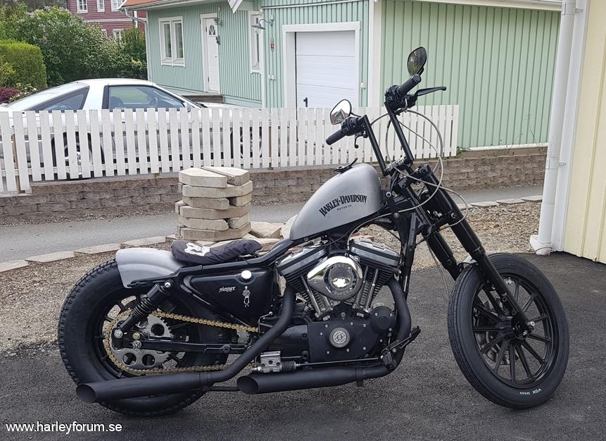 | 1200 Kölvar, kammar och lite portning på det. Sänkt bak, choppad i arslet och custom tank, blinkare, fram- och bakljus. Kedjekonverterad och lite pulverlackad. Tanken och bakskärm är slipad och lackad med matt klarlack. Däck är Avon Speedmaster |