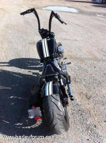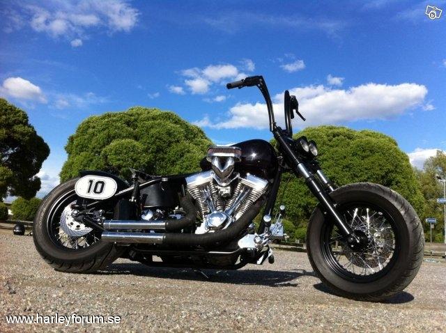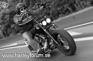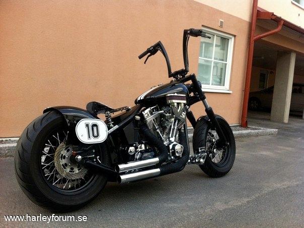 | Fakta: Motor: Ultima El Bruto (Evo) 107c.i eller 1753cc. Motorn levererar 108 hkr på bakhjulet. Ca 40 hästar mer än i Harley Davidsons Evo. Bänkad hos Jörgen på Supertwin i Älvsjö. Ram: Stelbent Gaffel: Harley original Styre: Fred Kodlin Raisers: Joker Machine Handtag: Performance Machine Drivning: BDL Top Fuel öppen belt Koppling och broms: Hydralisk koppling och broms från Outlaw Cycle Products. Bromsok från ISR. |