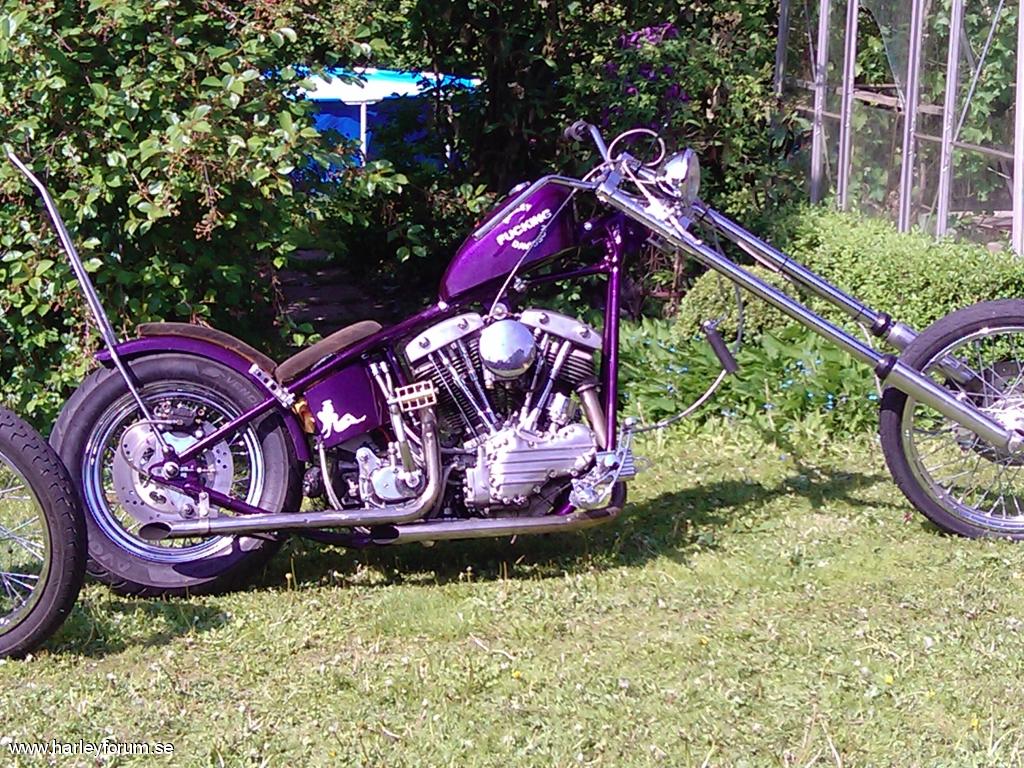 STD block, S&S toppar, superduper G, bänkad 110hk på slangen o går som ett spjut! Håller på att dra in den en del för bättre körbarhet, blir 4-5" förlängt mer bobber än chopper.