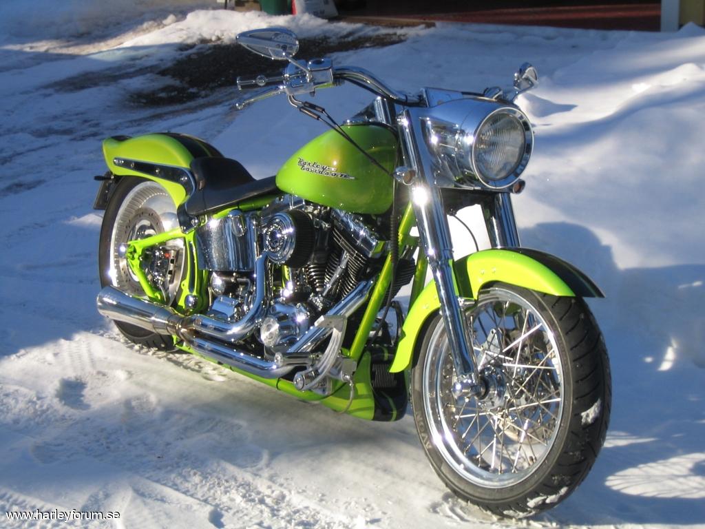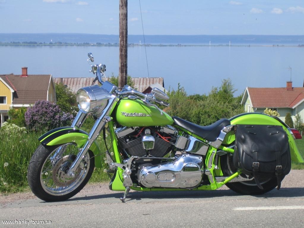 | Lätt ombyggd Heritage från-00, Screamin´Eagel toppar,1550 med 10.5 kolvar, SE-260 kammar, Mikuni 42, Pro pipe framdel med Super Trapp Ljuddämpare, Dyna tändning, 109,1 hästar på bakhjulet, Screamin´ Eagel 6-speed. |