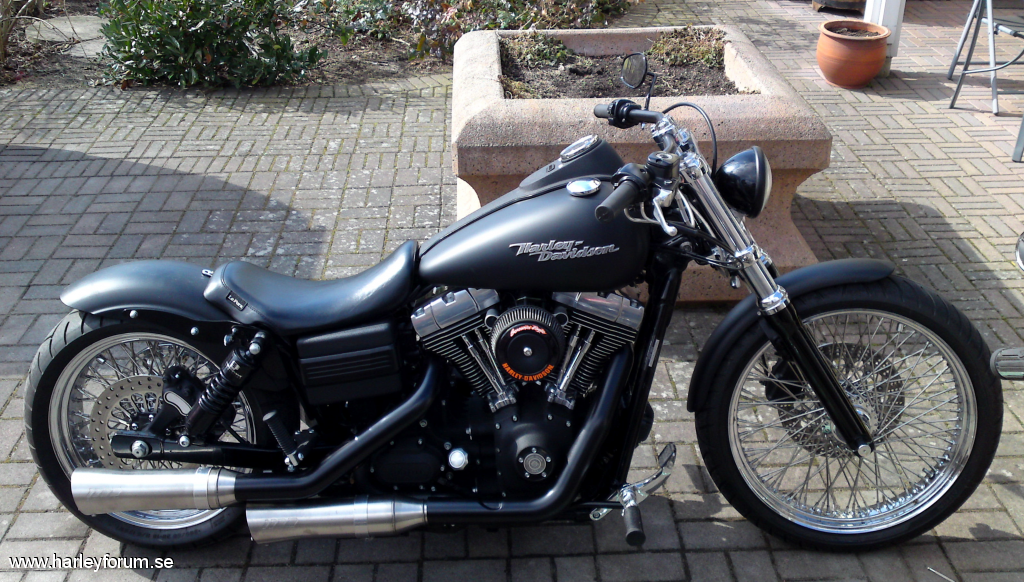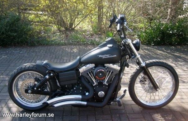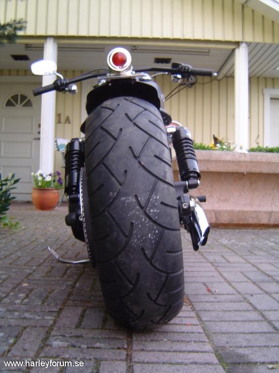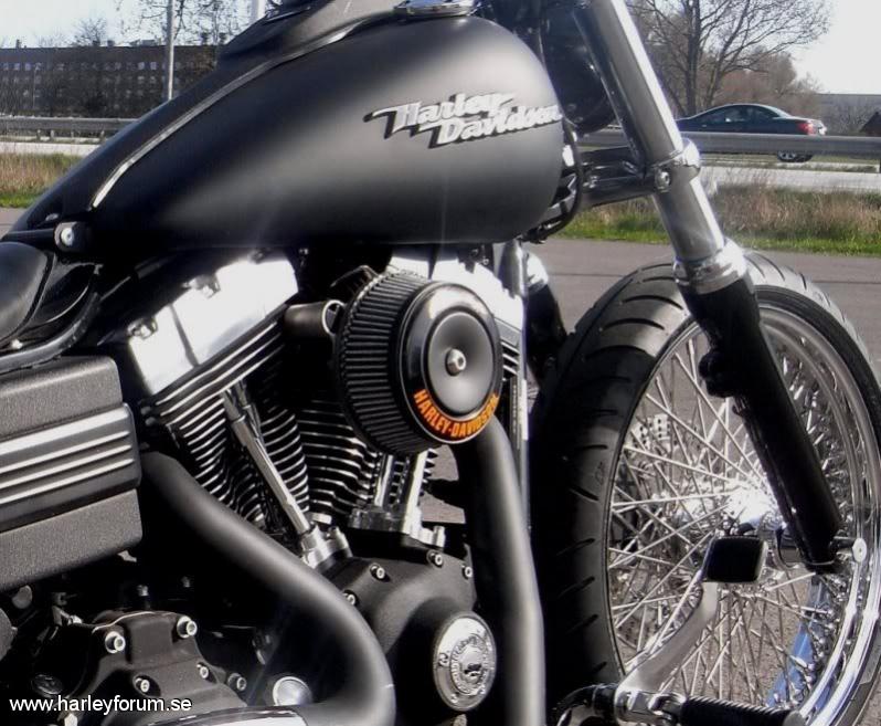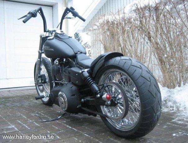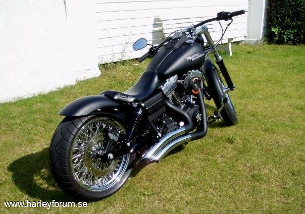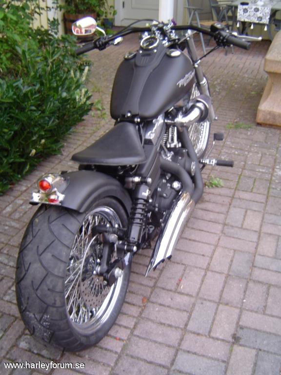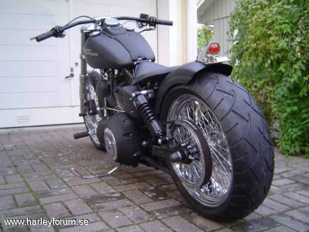 | 103cui Stage I SE 255 SE kammar SE Race Tuner Kapade skärmstag WideGlide krona 0 rake. Drott bromskiva fram/bak (Svensk, med lagt ner tyvärr) DNA belthjul bak. Metzeler ME-880 Däck 200/50-18 bak, 120/70-21 fram Fälgar 18"x5.5" och 21"x3.5", 80-ekrar, DNA Frank Kodlin Styre 12" V&H Big Radius 2-2 men sprayade övre sköldar. Framflyttade reglage H-D original Progressive 412 11" bak & 1.75" säkningsblock. 2" Progressive Drop-In kit fram. Ultima Solosits Lackade framben (epoxy-spray) m.m.m.m *Lottermanskärm på vissa bilder. *Sticksågs-Trimmad originalskärm på vissa bilder. *LePera BareBones på vissa bilder. *Hemmatillverkad sadel på nån bild. *Supertrappburkar på originalrören på nån bild. *97cm dragbarstyre på vissa bilder. Numera såld och bytt ägare, men svarar gärna på frågor! |